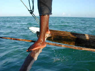 To navigate a dhow, it takes great knowledge and skill. The captain must be able to maintain his balance while adjusting the sail to work with the changing directions of the winds.