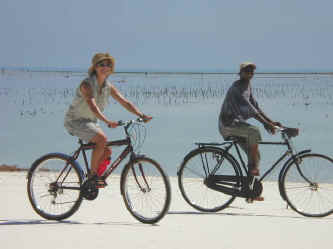 Bikes are the most popular means of transportation for the villagers who live along the beach.