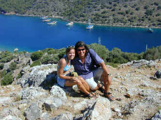 Our cruise was 3 days of sailing, swimming, eating, drinking, water-skiing, knee-boarding, and hiking on the many islands we visited. This is the view of our yacht, the Pinar 111, as seen from the top of St. Nicholas island, whose namesake is the famous guy who gave rise to good old Santa Claus.